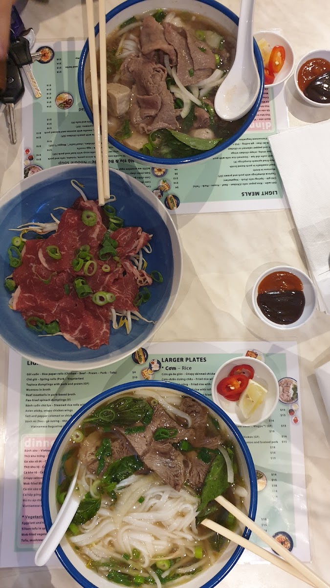 aromatic beef and pork broth with hint of lemongrass and pineapple, thick vermicelli noodle, pork, sliced beef rump, brisket, veges mix, chili oil (GF)